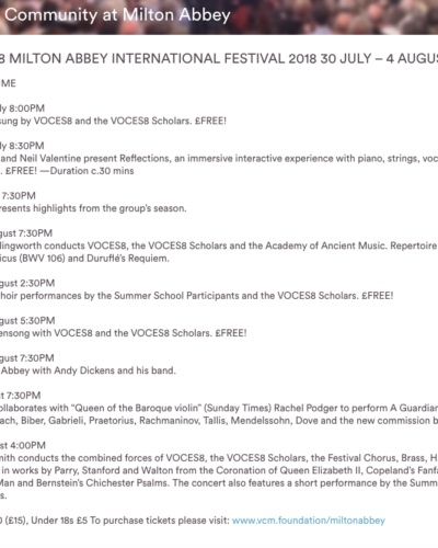 Box office: Tickets for Milton Abbey Church events are available on line via: https://timecounts.org/miltonabbey, by Telephone at 01258 881235