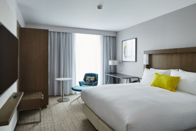 With 170 welcoming guest rooms feature complimentary Wi-Fi, 55-inch TVs with Chromecast technology, rainfall showers, comfortable Hypnos beds, and Nespresso machines. Guests can also unwind in the state-of-the-art fitness centre.