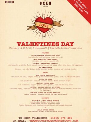 We had the Valentines Menu that The Oxen Bar & Grill presented this year, and the restaurant was full on a Saturday evening.