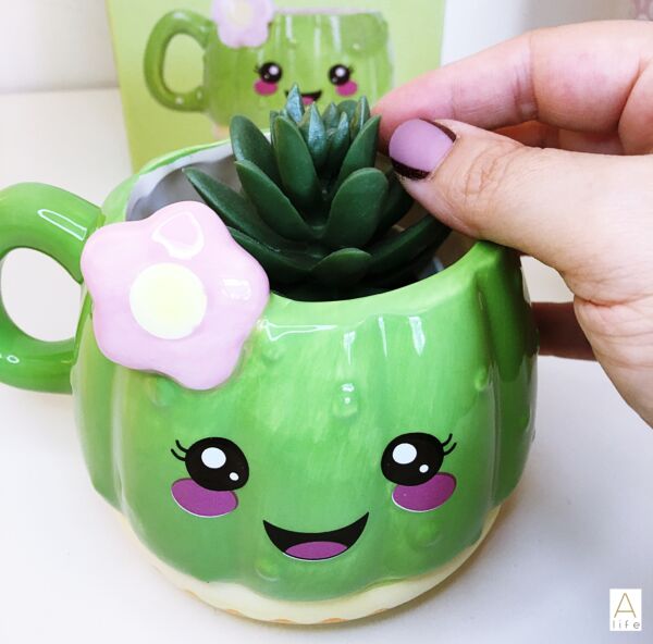 A cute mug can be used as whay it is for (a mug!) or why not use it as a planter or a pen organizer, like the Kawaii Cactus mug, and why not get the collection with Squishy? (named by Richie, my 5 year old). Squishy is a Kawaii stress-free toy…