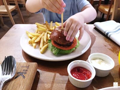 The Kids mini burger, of Mini, has nothing! The burger size is a size I have eaten in other restaurants for a normal adult. Of course, Richie loved it! I tasted it as well, who doesn’t love a fresh burger with hot buns? It was a good portion and really well presented.