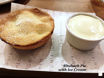 Mine: I simply cannot deny a warm Rhubarb pie! Just writing this, I wished I had one! Pasty was perfect. Homemade pastry, not crumbly, a perfect pie pastry with a delicious fresh rhubarb filling, accompanied by a vanilla ice cream.The mix of heavens. (p.s – want more!)