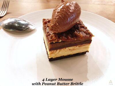 Hubby: The 4 layer Mousse with Peanut Brittle was one of those desserts we didn’t know it existed. Several layers of mousse, from milk chocolate to dark chocolate, with firm custard layer and a peanut brittle, was beyond expectation. And it was high, believe me. It’s something to really be tasted of how good this tasted. Not drama, reality!
