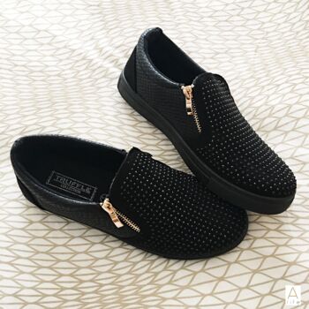 They have 2 gold zips and a different pattern in the lateral, back of the shoe, making it so cute to wear, with either jeans or with dresses, these are definitely a great and comfortable shoes to wear, and can add a sparkle to anything you wear, even if it’s the most basic one.