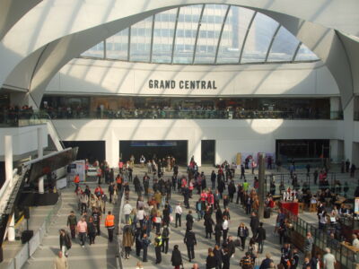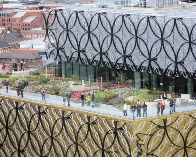 Bullring Shopping Centre was masterplanned and designed mainly by Benoy, and is a beautiful design building made with a mix between iron and polished aluminium with 2 buildings joined in the lower ground, letting people go through the markets towards the city centre and High street.