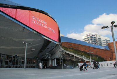 Birmingham New Street is the largest and busiest of the three main railway stations in the Birmingham City Centre, England. It is a central hub of the British railway system. It is a major destination for Trains services from London Euston, Glasgow and Edinburgh and the national hub of the CrossCountry network – the most extensive in Britain, with long-distance trains serving destinations from Aberdeen to Penzance.
