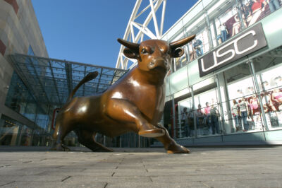 The Bull Ring is a major commercial area of central Birmingham. It has been an important feature of Birmingham since the Middle Ages, when its market was first held. Two shopping centres have been built in the area; in the 1960s, and then in 2003; the latter is styled as one word, Bullring.