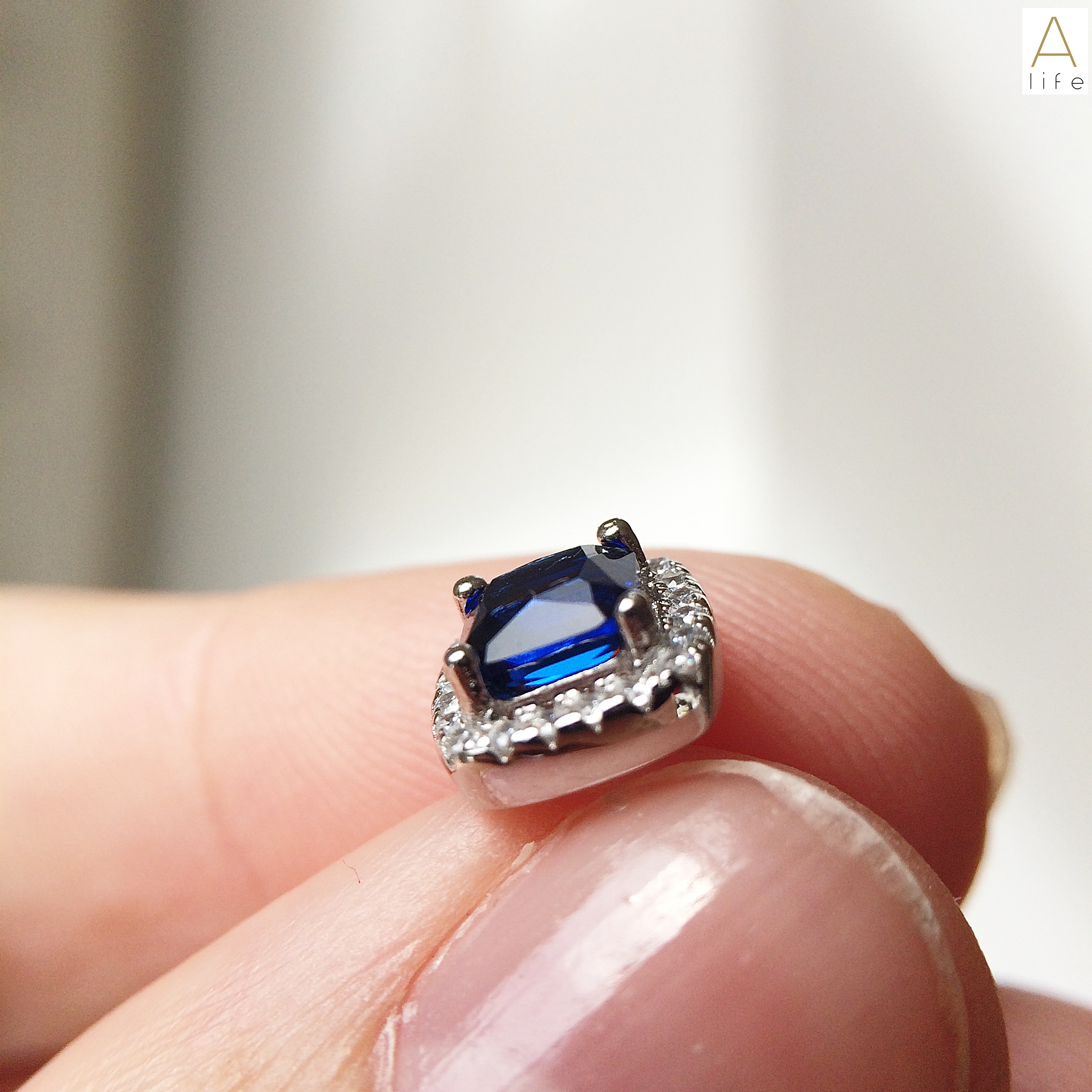 The pictures online or even mine, doesn’t make justice to the sparkle and the beautiful blue and the bling that the cubic zirconias share.