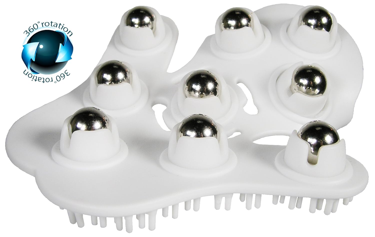 Relieves muscle spasms, Improves the appearance of cellulite. Has one side with spheres and on the side where your hand grabs, has tiny massage “spikes”, comfortable when using. It’s not waterproof. I am addicted to this. When using, if it hurts (meaning – there IS cellulite bags), continue to use it. Don’t be afraid is you see in the places you’ve massaged, tiny bruises. it means that the “fat” deposits, of cellulite bags, were destroyed. When those deposits are destroyed, that “fat” will go directly to your bladder to be expelled in your urine. This is an Absolutely MUST have!