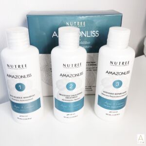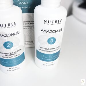 Not kidding at all! You know that sleek hair that Kim K has? Well AmazonLiss, a Brazilian/North American brand that is normally in salons, released a version of “Do it yourself at home” of the famous Brazilian sleek hair treatment, or Keratin treatment.