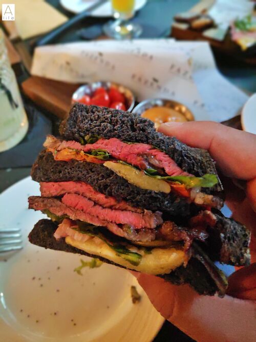 Brazilian Picanha beef sandwich — And we couldn’t end the brazilian dishes without the staple: the Picanha! Served in the black Rye bread with pickled cucumbers and onions, it is soooooo good!! The taste of the grilled picanha is absolutely gorgeous.