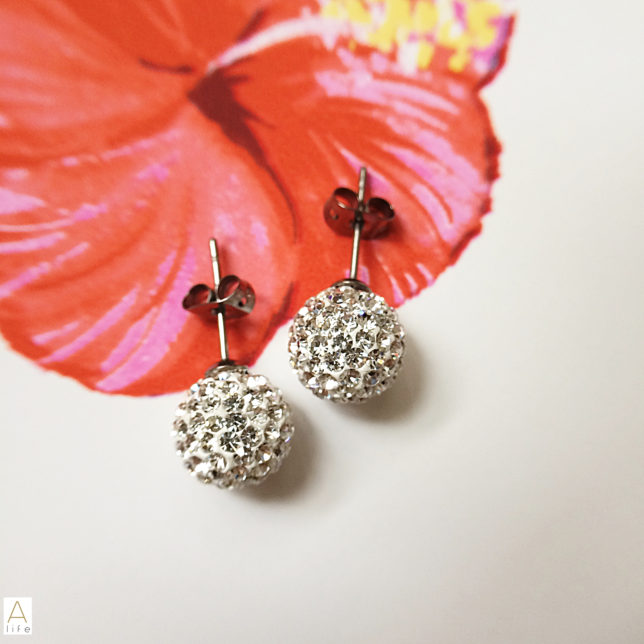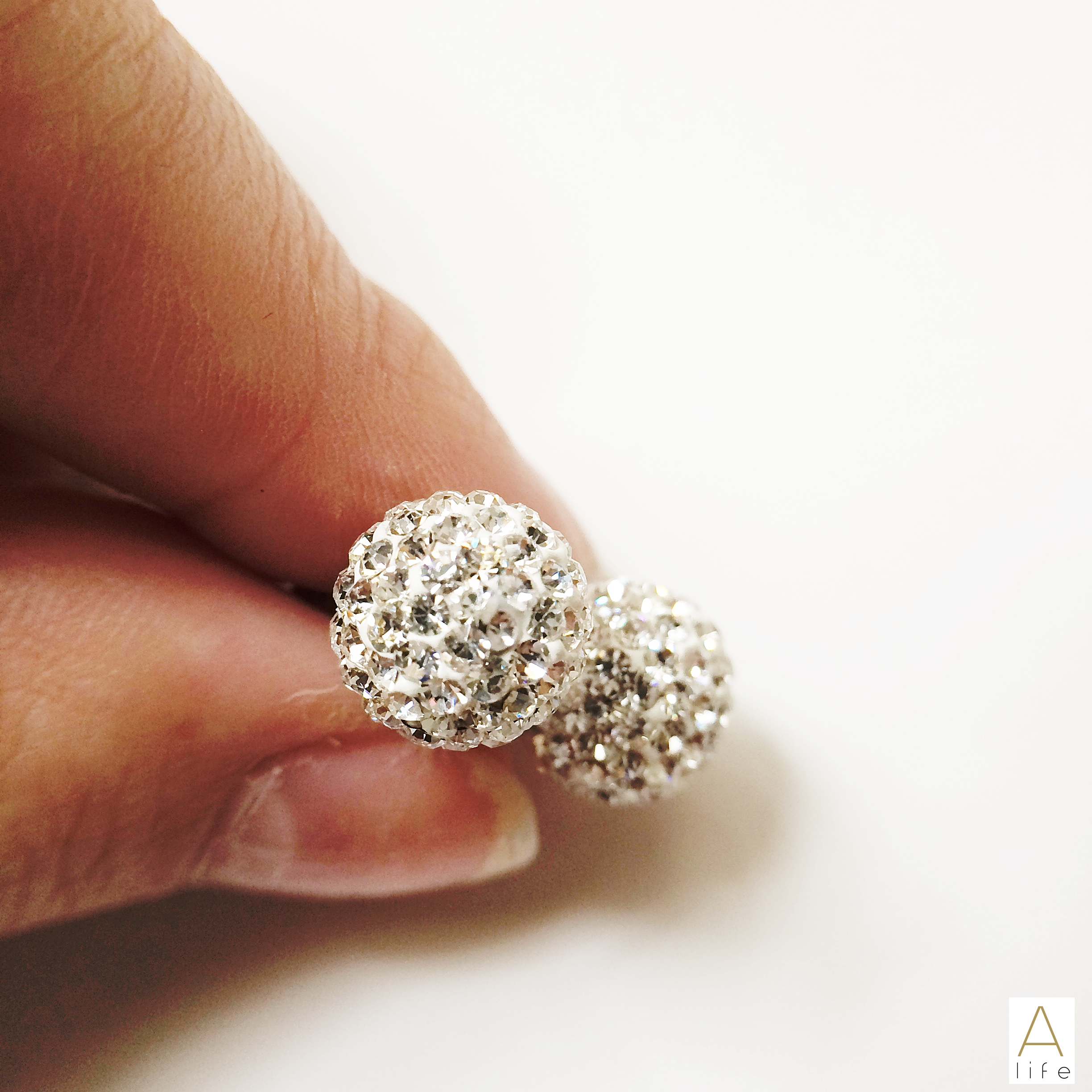 The Tresor Paris Bissey Titanium White Crystal Studs, are made from Sterling silver with and spherical shape craved with true crystals, specially selected for this jewel.